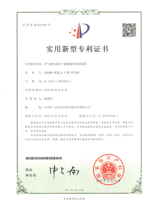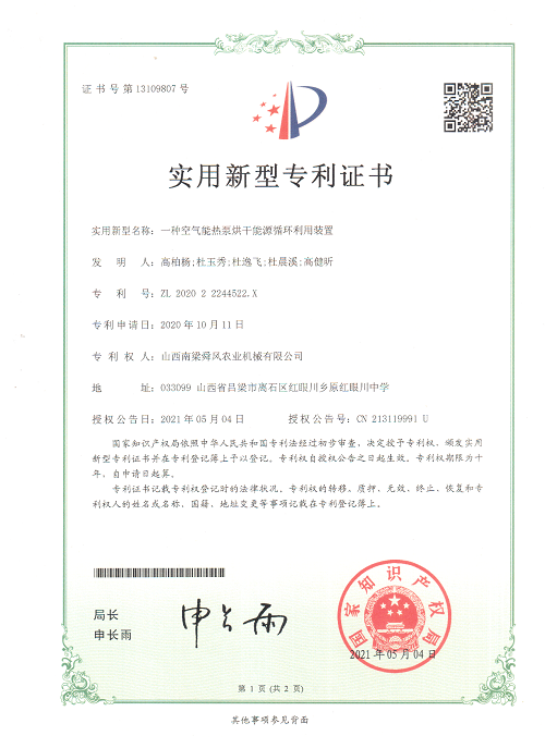 空氣能熱泵烘干能源循環(huán)利用裝置